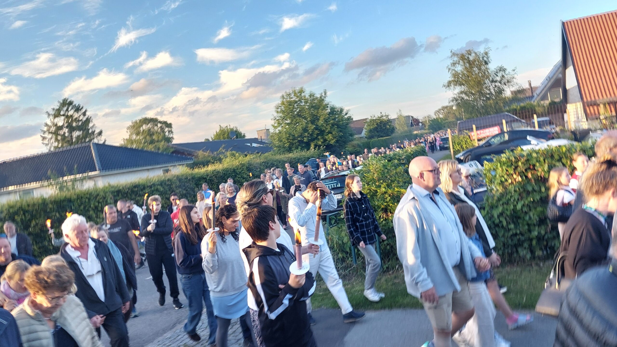 Hvert år mødes store og små ved Sportsklubben, og herfra går vi i samlet fakkeloptog, og med Golden Brass Band forrest ned til bålpladsen.